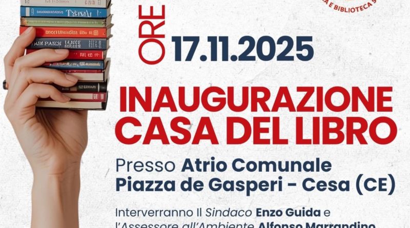 Cesa Sarà inaugurata lunedì 17 novembre alle ore 10:30, in Piazza De Gasperi, la “Casa del Libro”, un nuovo spazio culturale dedicato alla condivisione e alla libera circolazione dei libri. L’iniziativa rientra nel progetto “Lascia un libro, prendi un Libro” con la collaborazione della “Libreria il Dono – Libreria e Biblioteca Sociale”.