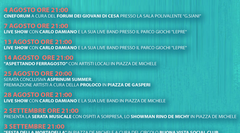 Cesa Dopo due anni di stop dovuto all’emergenza Covid-19 ritornano le iniziative estive nel Comune di Cesa.