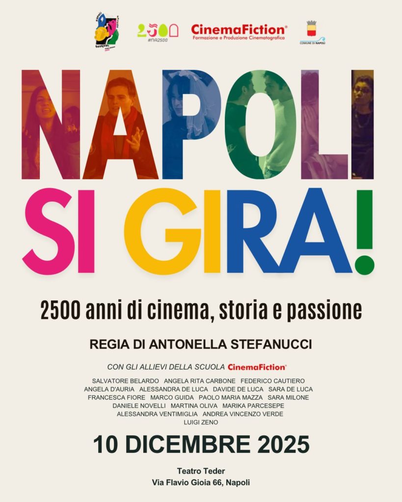 A rendere la serata ancora più intensa è stata la presentazione della suite “Napoli si gira”, inserita nel progetto #NA2500 promosso dal Comune di Napoli e sostenuto da CinemaFiction, realtà attiva nella formazione e produzione guidata da Antonio Acampora e Armando Ciotola. Questo momento ha offerto un dialogo raffinato tra teatro e cinema, intrecciando memoria storica e linguaggio visivo in un percorso narrativo che ha celebrato il legame profondo e indissolubile tra la città e il grande schermo, evocando immagini, storie e suggestioni che appartengono all’identità collettiva di Napoli.