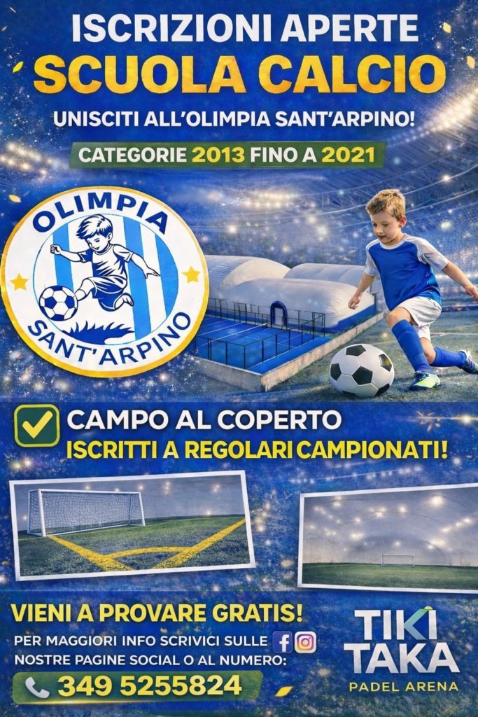 "Olimpia Sant’Arpino: passione, crescita e sport al servizio dei giovani" recita lo slogan della scuola calcio da cui poi hanno fatto sapere che per informazioni potranno essere utilizzati i canali social.