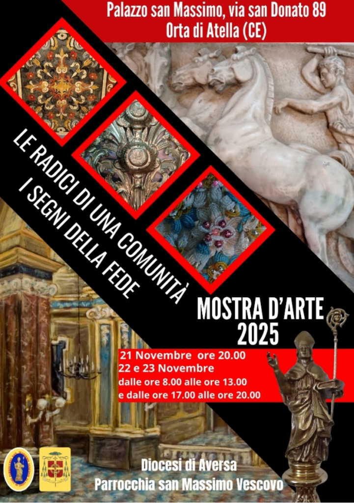 ORTA DI ATELLA. Dopo l’itinerario mariano che ha accompagnato il mese di ottobre, la Parrocchia di San Massimo Vescovo annuncia l’apertura della mostra “Le radici di una comunità. I segni della fede”, organizzata dal Parroco Don Paolo Gaudino e dal Gruppo di Tutela e Valorizzazione del Patrimonio e visitabile dal 21 al 23 novembre. L’iniziativa rappresenta un passo decisivo nella cura e nella promozione dei beni culturali della parrocchia: pezzi d’arte di argentieri napoletani, sculture un tempo venerate e quadri di artisti locali, alcuni dei quali purtroppo scomparsi.
