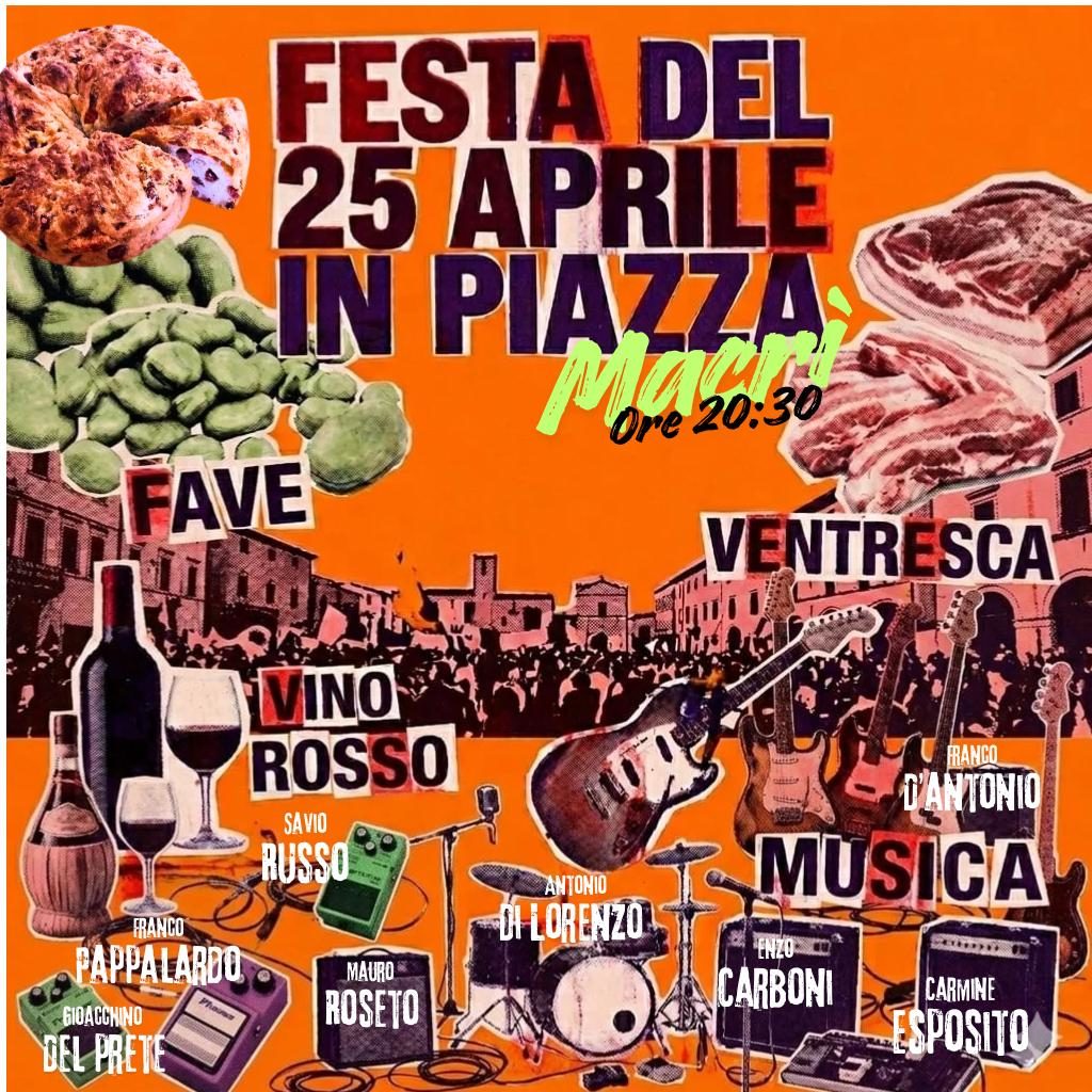 La giornata si concluderà con la manifestazione finale in piazza Salvo D’Acquisto, davanti alla sede dell’Associazione “Combattenti e Reduci”, dove istituzioni, studenti e cittadini si ritroveranno per un momento condiviso di riflessione. La sera, invece, appuntamento in piazza Macrì con la “Festa della Liberazione e della Solidarietà” a partire dalle 20 e 30. L'evento, organizzato da un gruppo di associazioni insieme al Caffè Letterario Macrì, servirà a raccogliere fondi per la missione passionista in Angola. Durante la serata si esibirà il gruppo di artisti di Enzo Carboni.