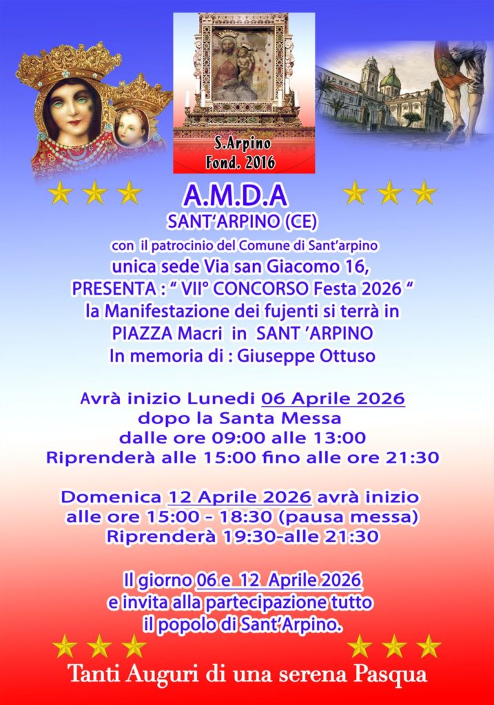 SANT'ARPINO. Il Comune atellano si prepara a vivere uno degli appuntamenti più sentiti e identitari della comunità con il VII Concorso “Festa 2026”, promosso dall’A.M.D.A Sant’Arpino con il patrocinio del Comune. Un evento che rinnova la profonda devozione popolare legata alla storica Manifestazione dei fujenti, simbolo di fede e appartenenza che da oltre cinque secoli attraversa il territorio.