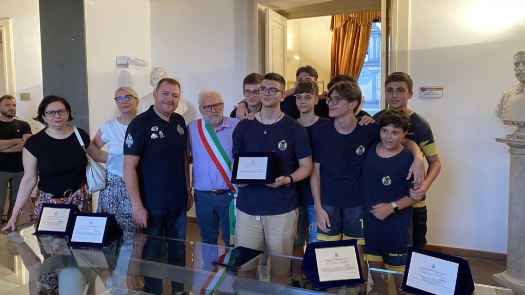 SANT'ARPINO. Si è tenuta domenica sera alle 20, nella sala busti di Palazzo Ducale, la consegna da parte dell'amministrazione comunale di una serie di targhe di riconoscimento alle squadre dell'Associazione Sportiva Dilettantistica Hidros Volley per la vittoria di ben sette trofei durante questa stagione sportiva.