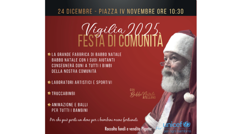 Quest’anno, la raccolta assume un significato ancora più profondo grazie a un momento di festa condivisa: il 24 dicembre, vigilia di Natale, tutti i beni donati verranno distribuiti in piazza durante un grande evento di comunità aperto a famiglie, bambini e ragazzi. L’appuntamento, che vedrà la partecipazione delle realtà associative del territorio, offrirà attività, laboratori e servizi dedicati ai più piccoli, trasformando la solidarietà in un’esperienza collettiva di partecipazione e inclusione.